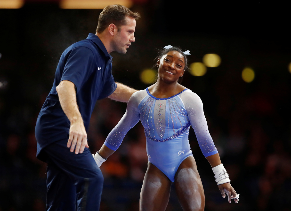 (Reuters) - American Simone Biles landed the triple-double on the floor exercise and the double-double dismount off the balance beam at the world gymnastics championships in Stuttgart, Germany on Saturday to have two new skills named after her.