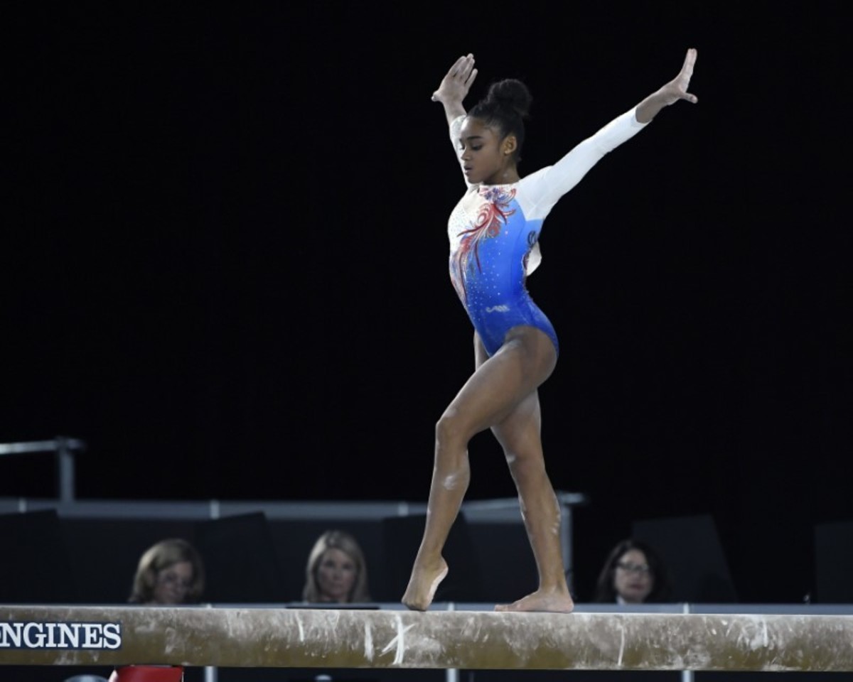 The 16-year-old grabbed the United States' seventh straight Olympic or world all-around title by edging out Canada’s Elsabeth Black 55.232 to 55.132.
