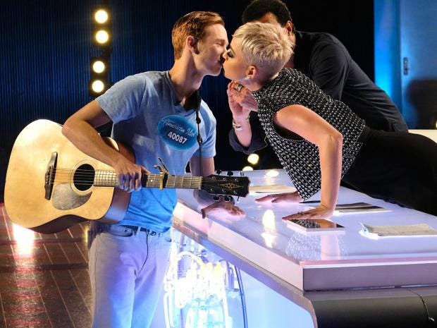 Mr Glaze, who at the time of his audition was a 19-year-old cashier from Enid, Oklahoma, walked in and told the judges he liked his job because he could meet cute girls. Judge Luke Bryan, quoting a Perry song, asked Mr Glaze “have you kissed a girl and liked it?”