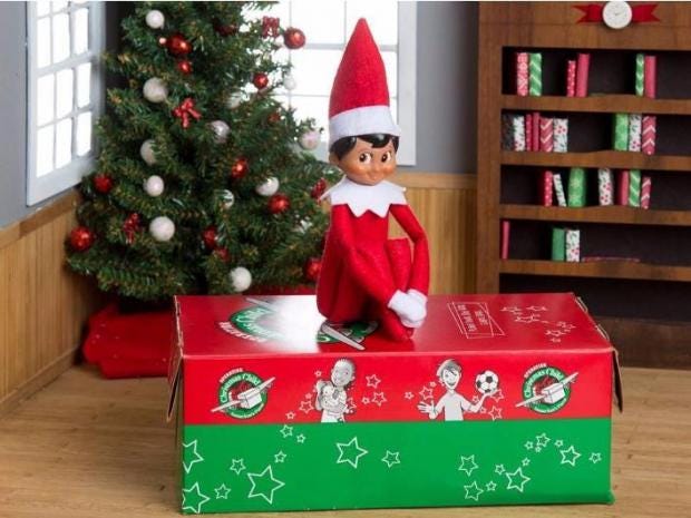 Inspired by a 2005 children's book and sold with the book for $30, Elf on the Shelf is part Christmas decoration, part babysitter. Many parents tell their children that the doll is observing them in the weeks before Christmas, reporting to Santa whether or not they've behaved well enough to receive gifts.