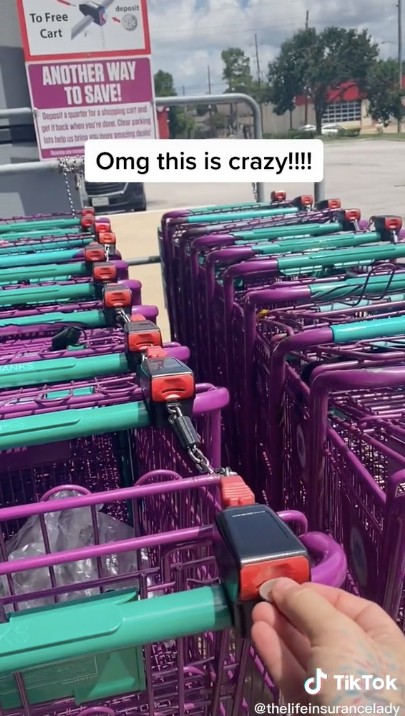 We are talking, of course, about coin-release shopping trolleys. Posting on TikTok, Ashley Verhalen recounted her exciting trip to the shops in which she discovered these devices.
