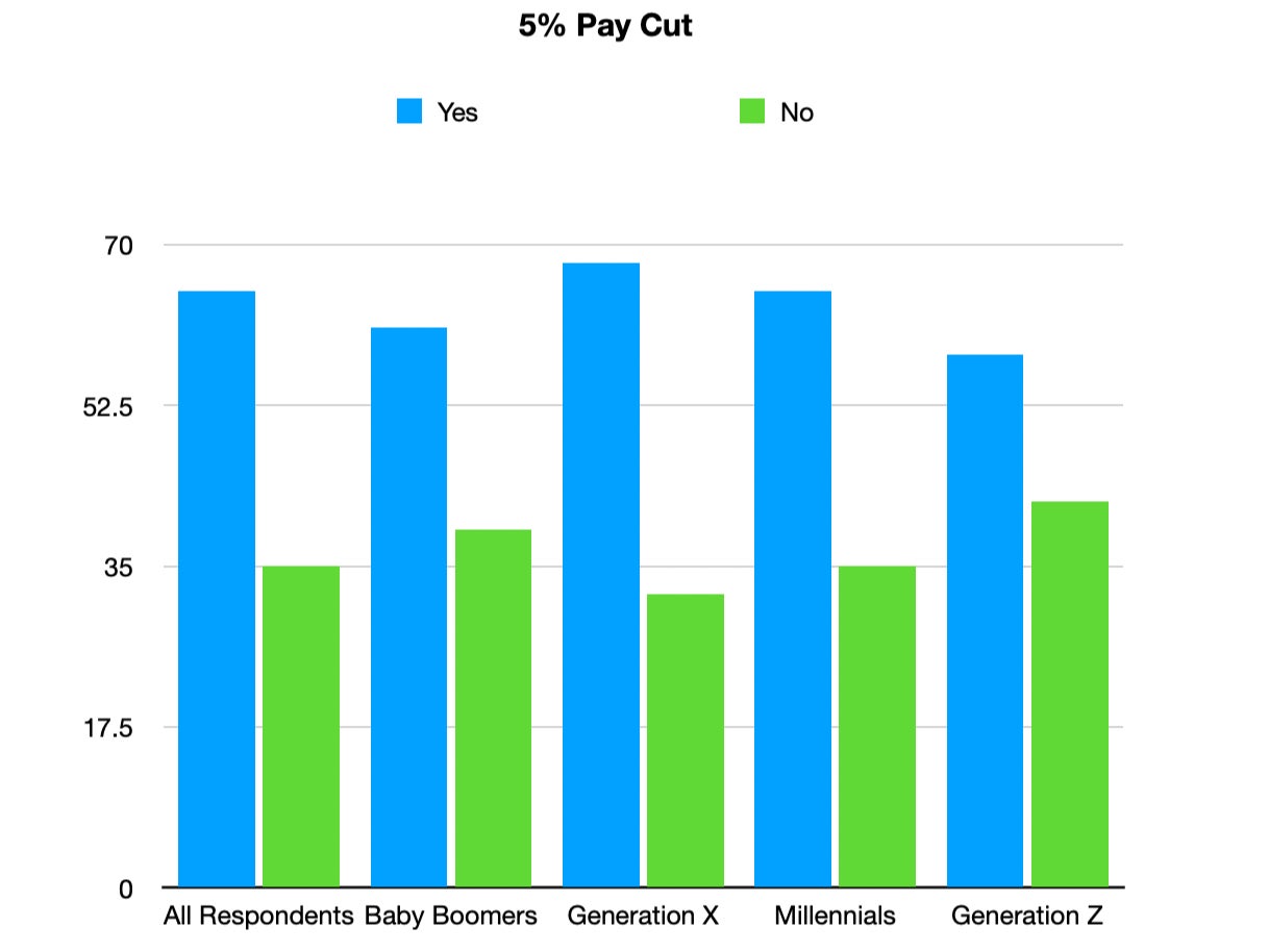 Out of all groups surveyed, Generation X and Millennials were most likely to accept a pay cut in return for perpetual remote work, while Gen Z was most likely to take on an extra 10 hours of work.