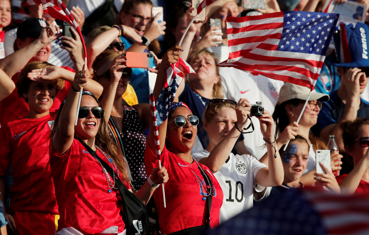 The stars and stripes of the American flag flickered across the tightly-packed stands, waved most vigorously by young girls and their supportive parents who took them halfway across the world to see their team.