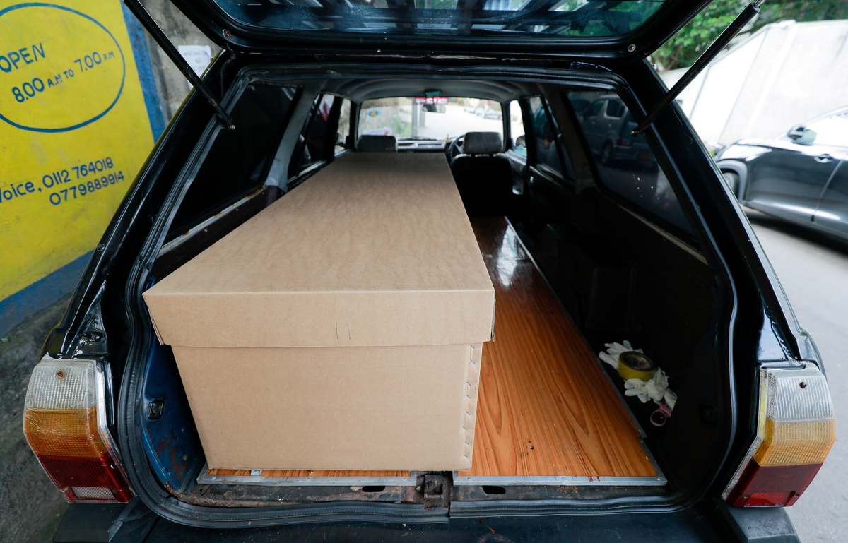 As Sri Lanka's death toll from COVID-19 surges, some are opting for these cardboard coffins when they cremate their loved ones. The country recorded its highest daily death toll of 198 on Friday, with total fatalities reaching 7,560.