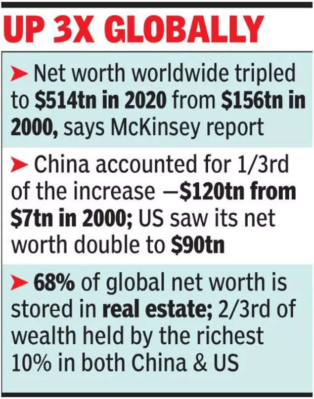 NEW DELHI: Global wealth tripled over the last two decades, with China leading the way and overtaking the US for the top spot worldwide.