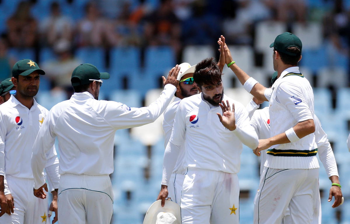 Quinton de Kock (45) looked for quick runs at the death of the innings and pushed the lead to 42, but was deceived by a slower ball from Amir and caught at cover by Fakhar Zaman to be the last man out.