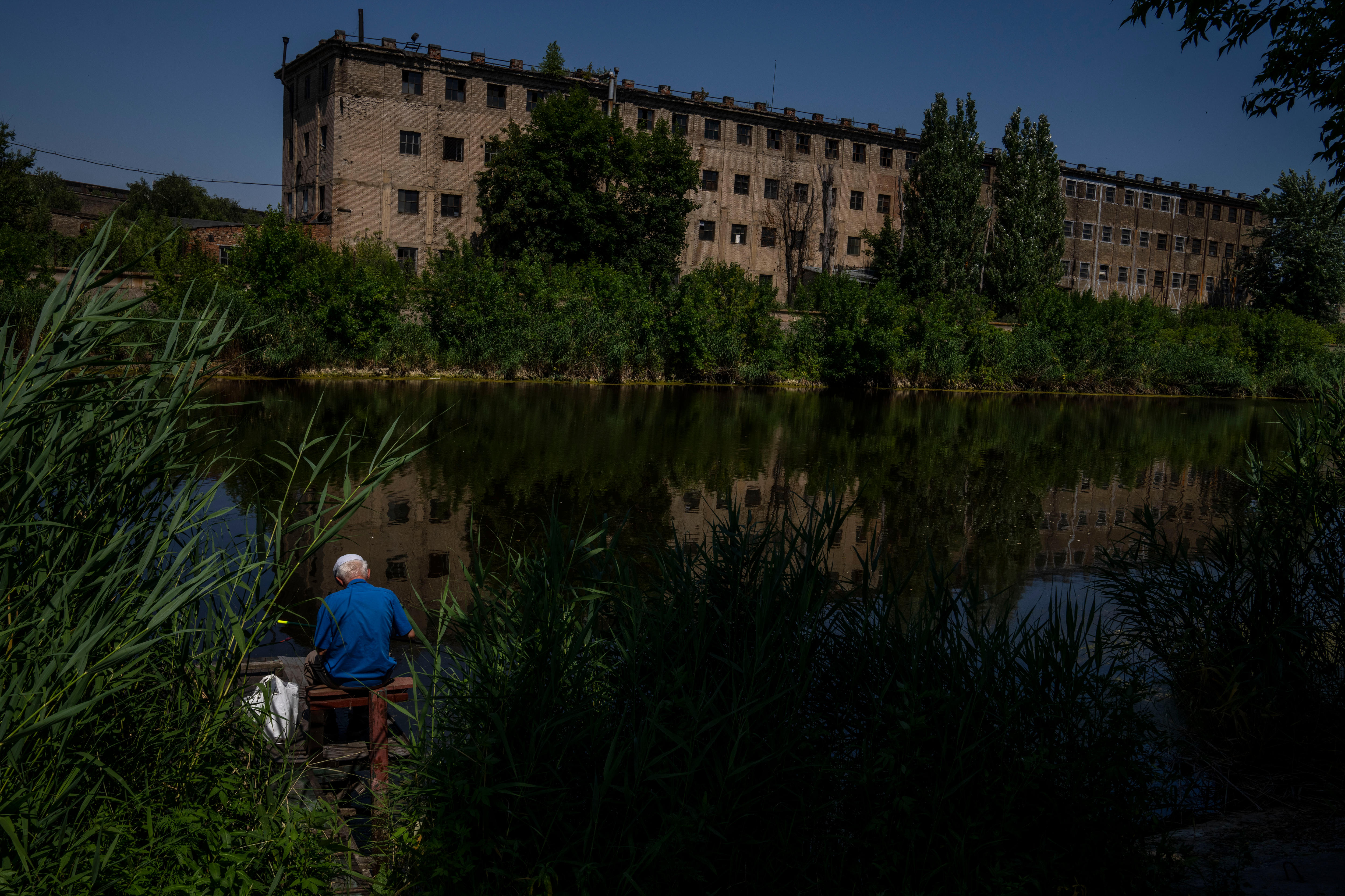 A retiree fishing on the Kazennyi Torets River says he loves his hometown but is too old to fight.