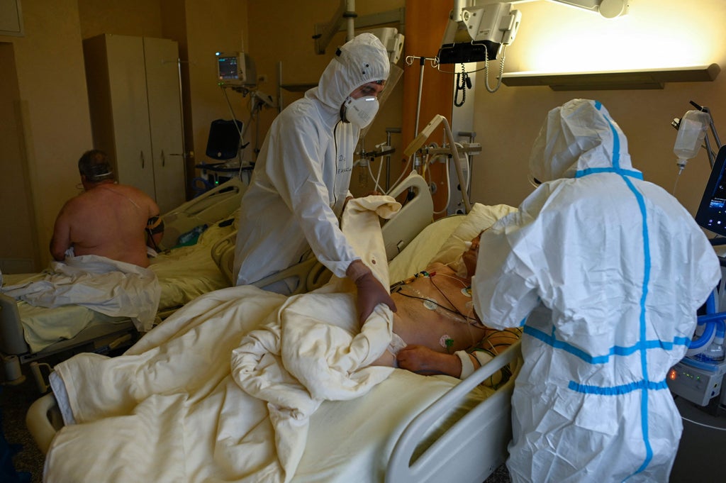 And in Ukraine, where just 21 per cent of people have been jabbed, hospitals are overflowing with Covid-19 patients, forcing medical facilities to set up makeshift tents to tend to the sick and dying.