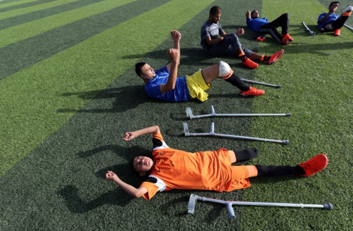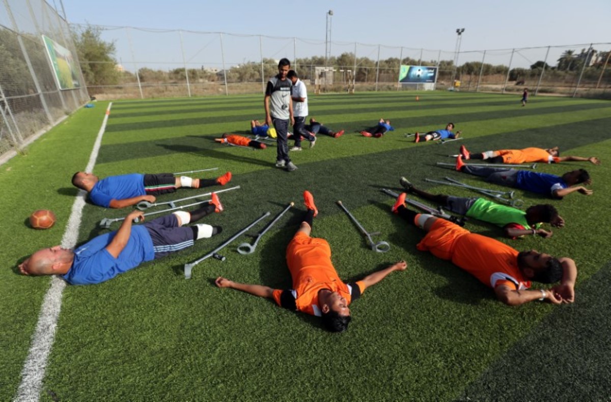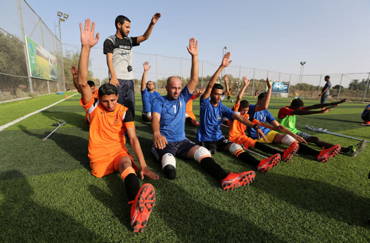 A member of a Palestinian amputee football team, which is made up of players most of who lost their legs in the conflict with Israel, trains on a soccer pitch in the central Gaza Strip June 21, 2018. Picture taken June 21, 2018. REUTERS/Ibraheem Abu MustafaMembers of a Palestinian amputee football team, which is made up of players most of who lost their legs in the conflict with Israel, exercise on a soccer pitch in the central Gaza Strip June 21, 2018. Picture taken June 21, 2018. REUTERS/Ibraheem Abu MustafaMembers of a Palestinian amputee football team, which is made up of players most of who lost their legs in the conflict with Israel, exercise on a soccer pitch in the central Gaza Strip June 21, 2018. Picture taken June 21, 2018. REUTERS/Ibraheem Abu MustafaMembers of a Palestinian amputee football team, which is made up of players most of who lost their legs in the conflict with Israel, exercise on a soccer pitch in the central Gaza Strip June 21, 2018. Picture taken June 21, 2018. REUTERS/Ibraheem Abu MustafaA member of a Palestinian amputee football team, which is made up of players most of who lost their legs in the conflict with Israel, trains on a soccer pitch in the central Gaza Strip June 21, 2018. Picture taken June 21, 2018. REUTERS/Ibraheem Abu MustafaMembers of a Palestinian amputee football team, which is made up of players most of who lost their legs in the conflict with Israel, play a game on a soccer pitch in the central Gaza Strip June 21, 2018. Picture taken June 21, 2018. REUTERS/Ibraheem Abu MustafaMembers of a Palestinian amputee football team, which is made up of players most of who lost their legs in the conflict with Israel, play a game on a soccer pitch in the central Gaza Strip June 21, 2018. Picture taken June 21, 2018. REUTERS/Ibraheem Abu Mustafa