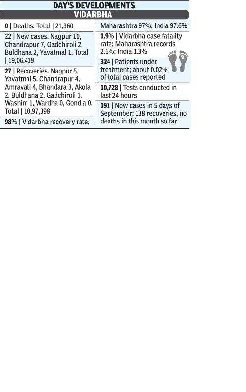 Overall, 27 patients recovered from 11 districts of Vidarbha. Of the 11,19,119 patients reported so far, 10,97,398 have recovered for recovery of 98%, which is better than both state and national average.