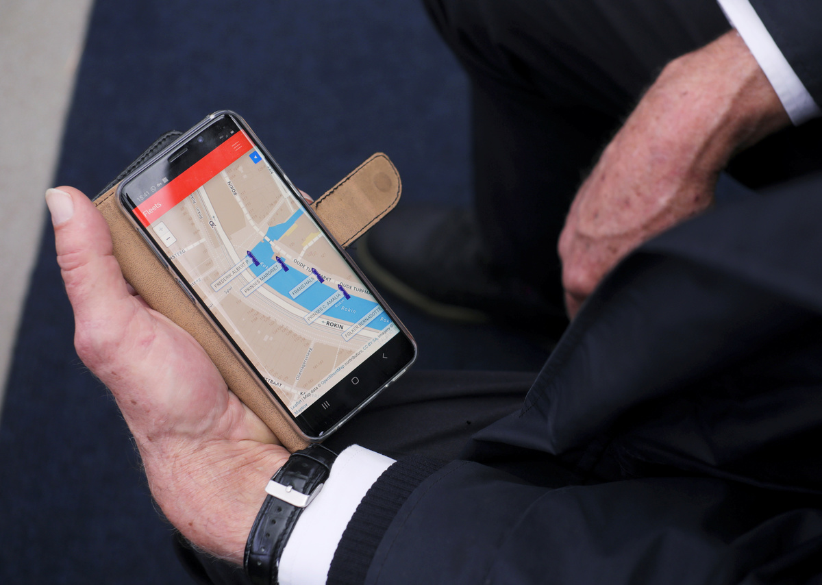 Kooij monitors its fleet, including battery levels, from a modern control booth inside an old stone building near Amsterdam's Dam, where spice-laden ships rolled in from the East Indies in the 1600s.