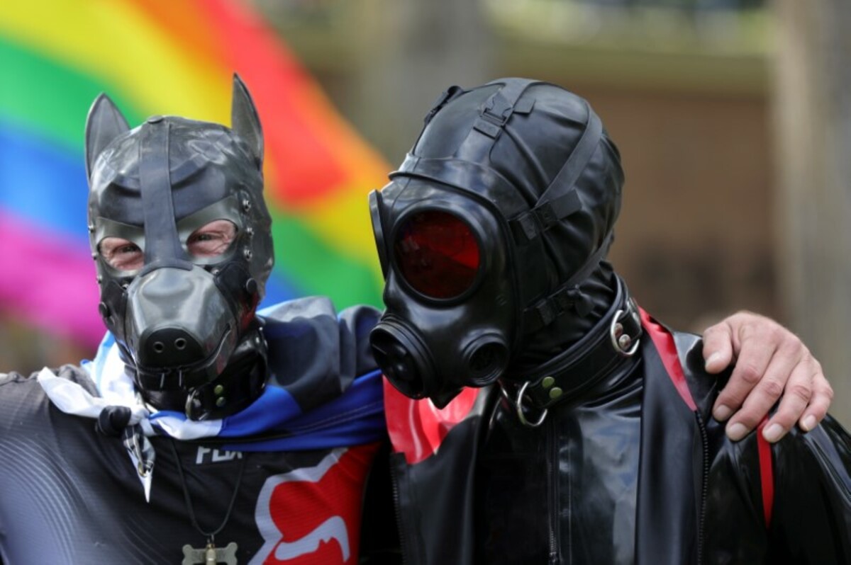 Flags from 71 countries around the world where homosexuality is a crime lined the route, together with a sign describing grim punishments prescribed for those convicted.