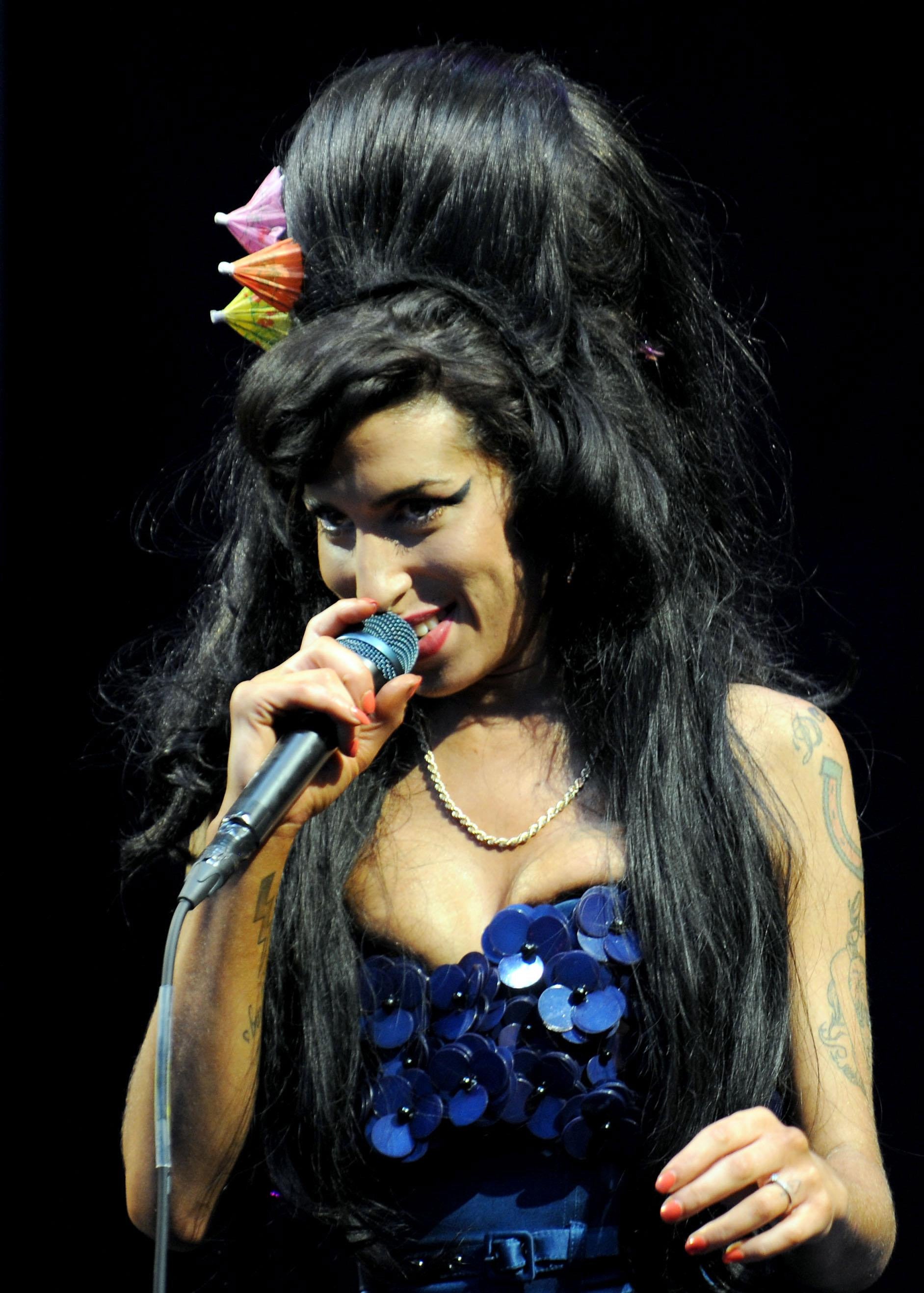 The beehive had a wardrobe of its own, Winehouse accessorising it with scarves, rosettes, brooches and, for one Glastonbury appearance, a trio of cocktail umbrellas.