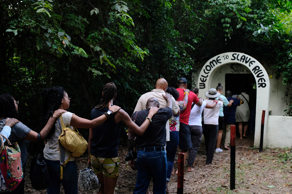 The previous day, the group had visited a river farther inland where slaves were forced to bathe before imprisonment on the coast ahead of their journey to the Americas.