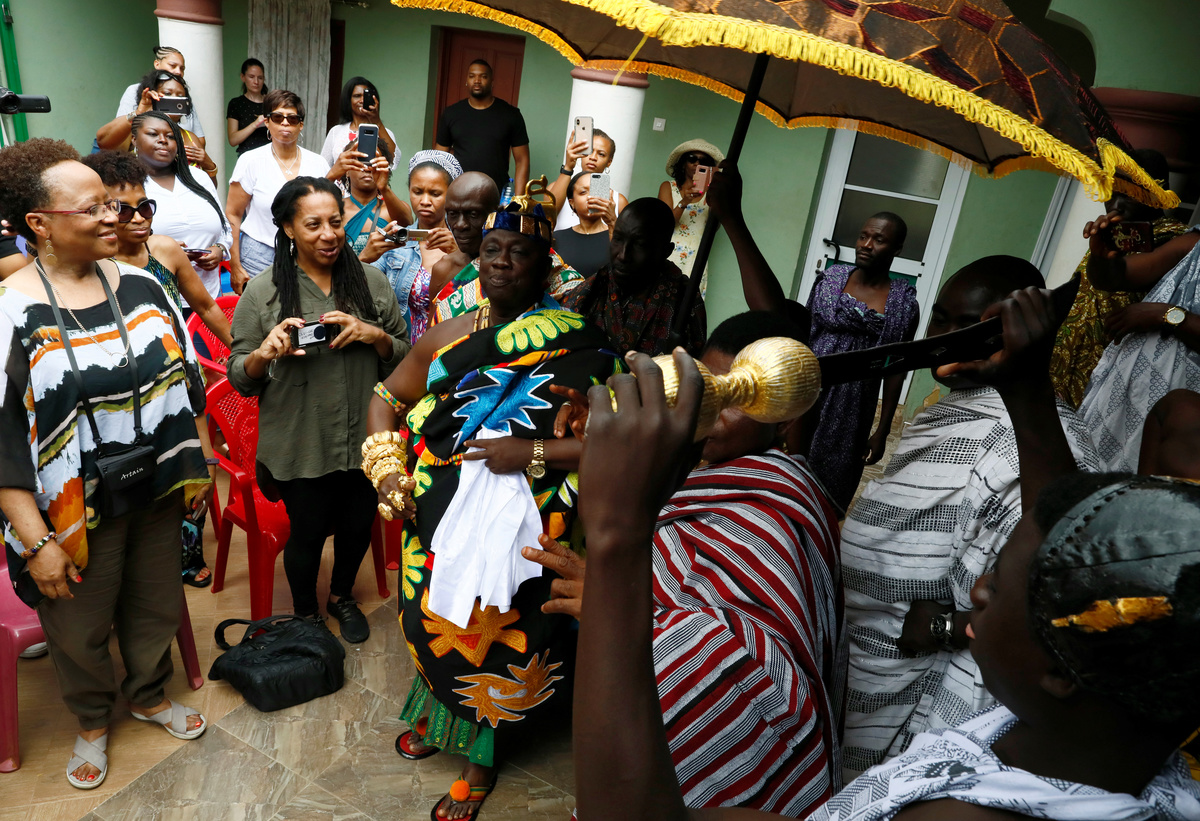 After arriving in the sprawling, humid Ghanaian capital, Accra, Sanchez and her daughter joined a group of around 40 mostly African Americans. They got to know each other as they were taken around the city by a tour guide who taught them to sing a Ghanaian hymn and how to respond to a traditional call for their attention in the local Akan language.