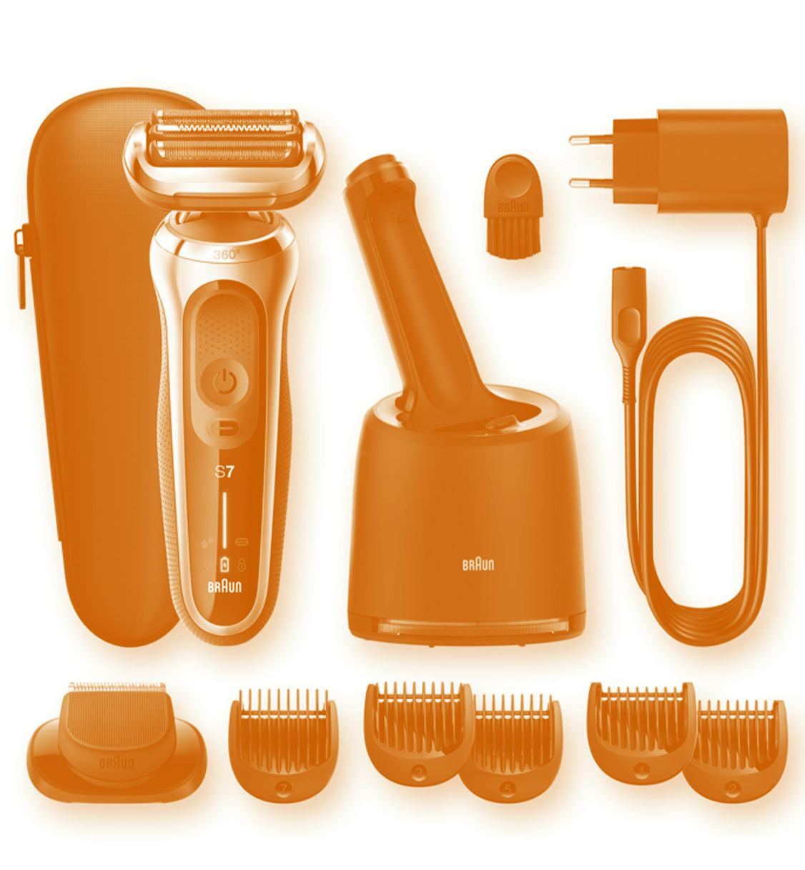 One of the biggest improvements Braun is offering with the Series 7 is a patented 360 Flex system that allows the shaver to capture more hair with every stroke, achieving a smooth shave that adapts to the counters of your face and neck — even in tricky areas. The key to a clean-looking shave is making sure your razor has constant contact with your face, and with a flexible three-blade shaving head, you can hit all the angles, getting an even shave every time. Also, the Braun’s shaver head is separate from the body thanks to a newly modeled drive system, which allows the razor to go back and forth, up and down, left and right, giving you optimum contact with ease.
