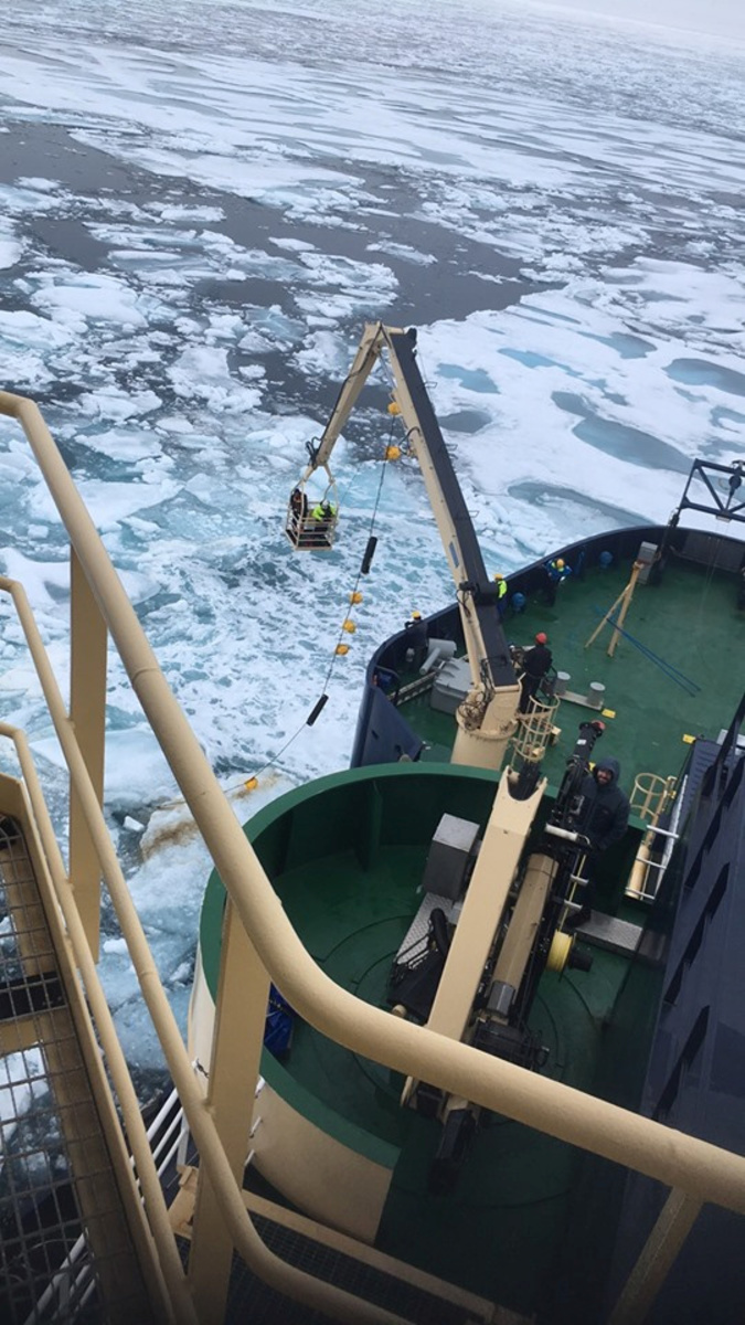 The crew initially tried to retrieve the instrument using a small boat, but then resorted to the riskier option of using the Oden's thrusters and reinforced prow to prise it from an ice floe on July 25.