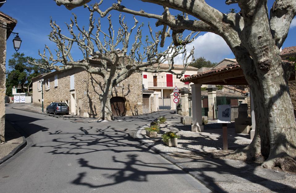 This commune looks as if it’s carved into the hill and it’s actually named for the many troglodyte caves (or baumes) established in the rock. The historic Notre Dame d’Aubune chapel crowns the village, a flâneur‘s paradise of flower-lined streets and decorative doors. The local wine co-ops, Vignerons de Beaumes de Venise and their partner Rhonéa, are some of my favorite in France — well worth visiting or at least finding a bottle to enjoy at home.