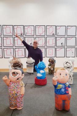 Charming but at the same time critical of the contemporary world, the exhibition "Tian Tian Xiang Shang: Arts Is Learning Learning Is Arts" resulted in a collaboration between the BACC and Zuni Icosahedron -- whose founding member and co-artistic director Danny Yung created the blank figurine for artists, politicians and anyone with a voice to project their thoughts, feelings and creativity.