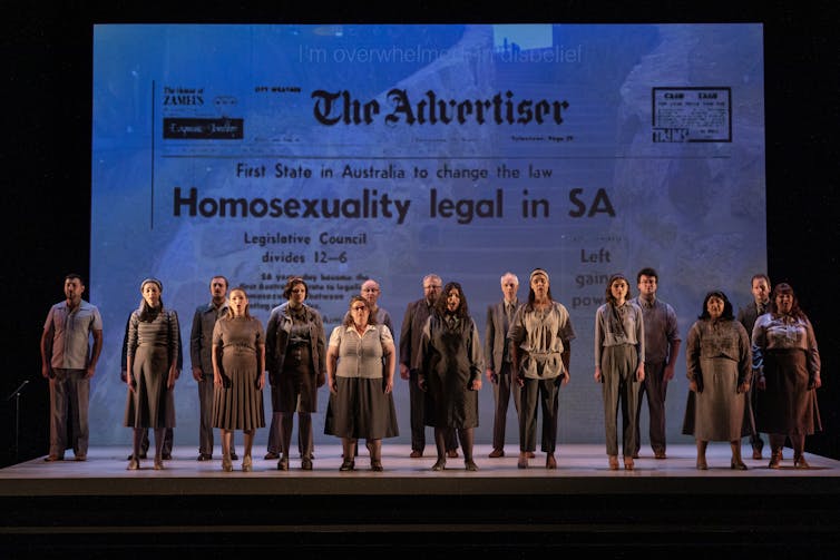 18 singers from the Adelaide Chamber Singers guide the audience through the story of Dr Duncan while evoking an era in which “coming out” becomes possible for greater numbers.