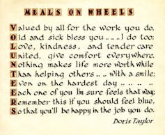 Determined to become a useful member of society, she had no time for self-pity, according to Meals on Wheels historian Michael Cudmore. “We are in the world to help each other,” she would say.