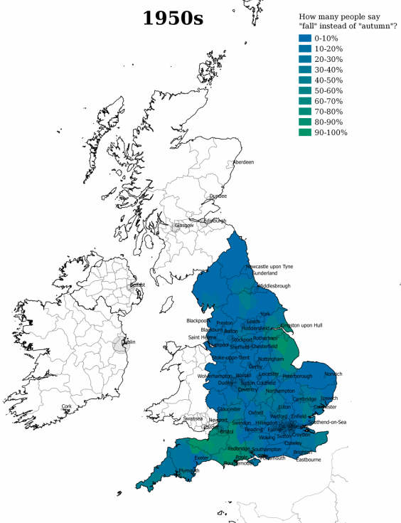 Back in the 1950s, people in the West Country and Hull said “FALL” rather than “AUTUMN.”
