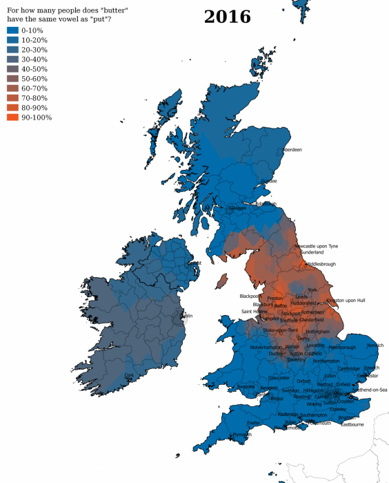 Blaxter says that the influence of London and the South East has spread southern pronunciations over the rest of the country — which is why a large minority of people in Hull and Plymouth now say “FREE” even though their parents grew up saying “THREE.”