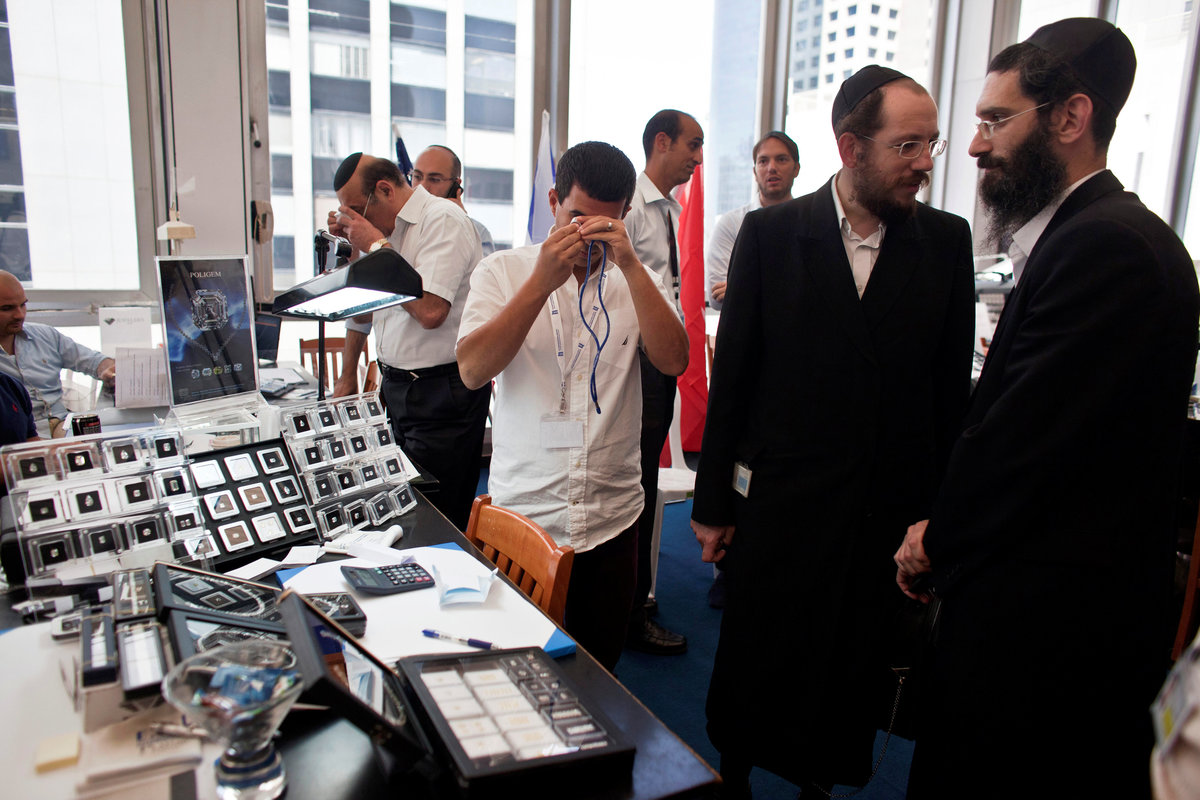 Israel's diamond district is full of polishers who specialize in large, high-end diamonds. The country cannot compete in smaller stones with massive operations in India and China. The trade by nature is global. The State Bank of India has a branch beside the exchange.