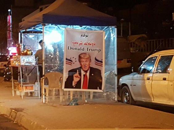 In the Kurdish city of Sulaymaniyah, a large Trump poster now graces the side of a chickpea stand on the side of the road.