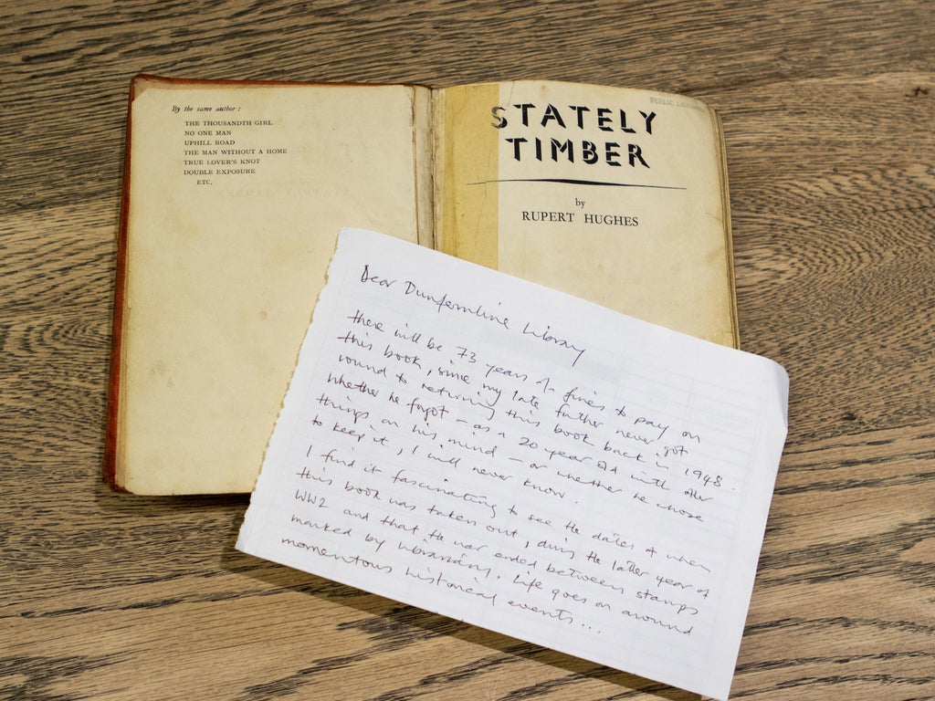 The book, Stately Timber by Rupert Hughes, was due to return to what was then known as Dunfermline Public Libraries’ Central Library in Abbot Street more than seven decades ago.
