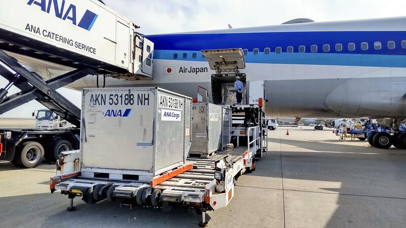 Throughout the day, more ANA flights touched down on the tarmac, ferrying more fresh produce, including Sanukihime brand strawberries and Sanuki Gold kiwis from Kagawa Prefecture, and Yokihi onion sprouts from Yamaguchi Prefecture.