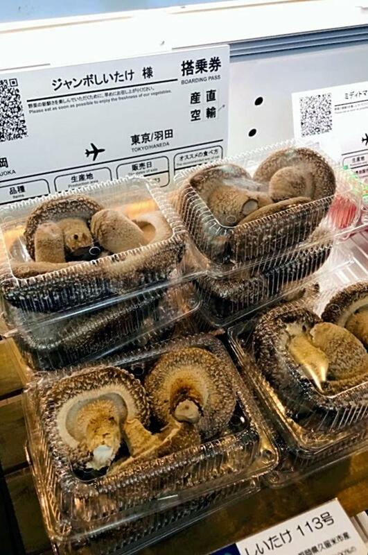 Shortly before noon on Friday, shiitake mushrooms harvested that morning in Kurume, Fukuoka Prefecture, were unloaded from an ANA plane that arrived at Haneda Airport from Fukuoka.