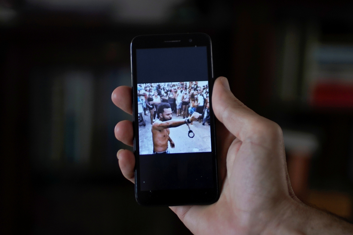 A striking image is circulating this week on social media in Cuba: a dissident pumping his fist in the air, handcuffs dangling from one wrist, after friends and neighbors helped him evade arrest by police in Havana.
