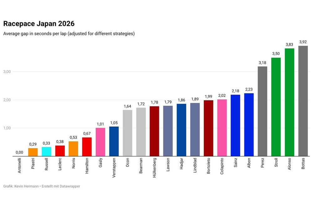 Nevertheless, it can be said that both McLaren and Ferrari were closer to Mercedes in Japan than in Australia and China. Over the entire race, the average gap was 0.29 seconds per lap for McLaren and 0.38 seconds for Ferrari.