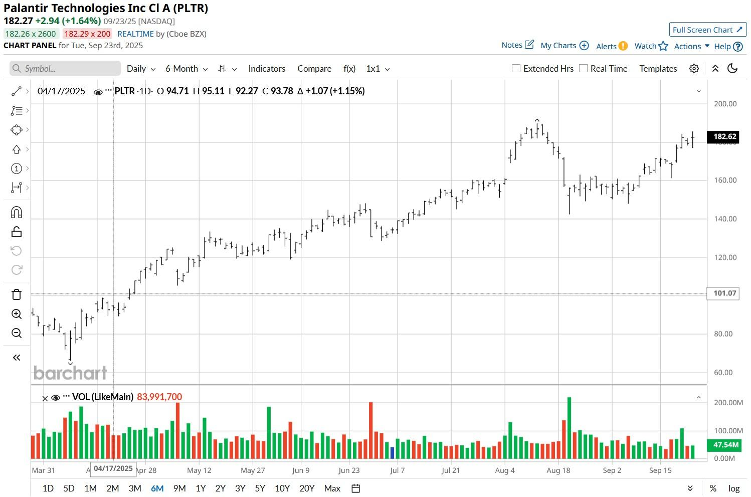 At the time of writing, Palantir stock is up some 180% versus its year-to-date low set in mid-January.