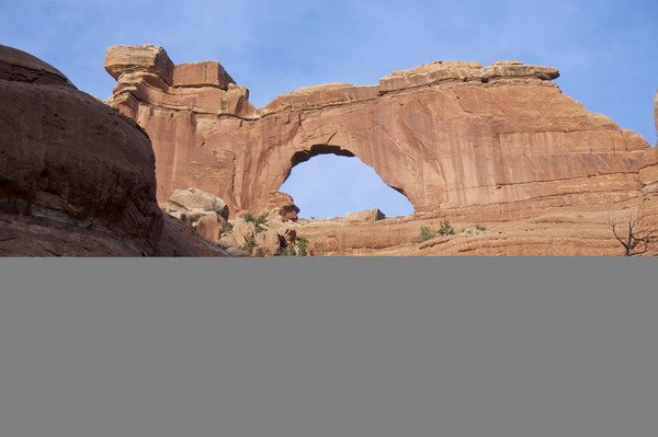Even when not searching for a particular ruin, it pays to watch the canyon walls, because many ruins are not on maps. Binoculars help because the stonework of the ruins typically blends in with the red rock canyons. The Anasazi used the landscape as a central design component, with canyon walls becoming roofs.