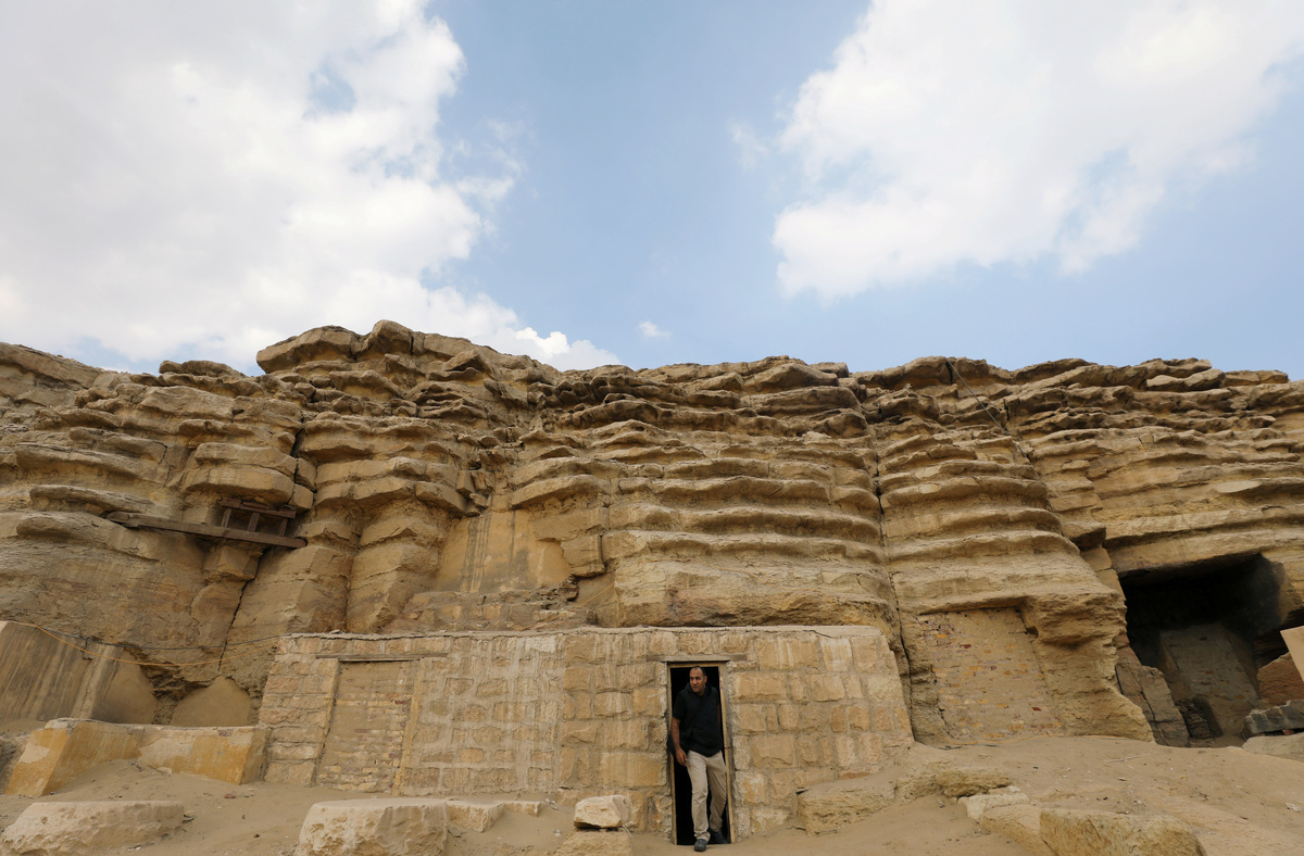 The tomb dates from the Fifth Dynasty of the Old Kingdom and is unusual because the facade and door are intact, meaning its contents may still be untouched, said Mohamed Youssef, director of the Saqqara area. He said experts plan to open the tomb in the coming weeks.