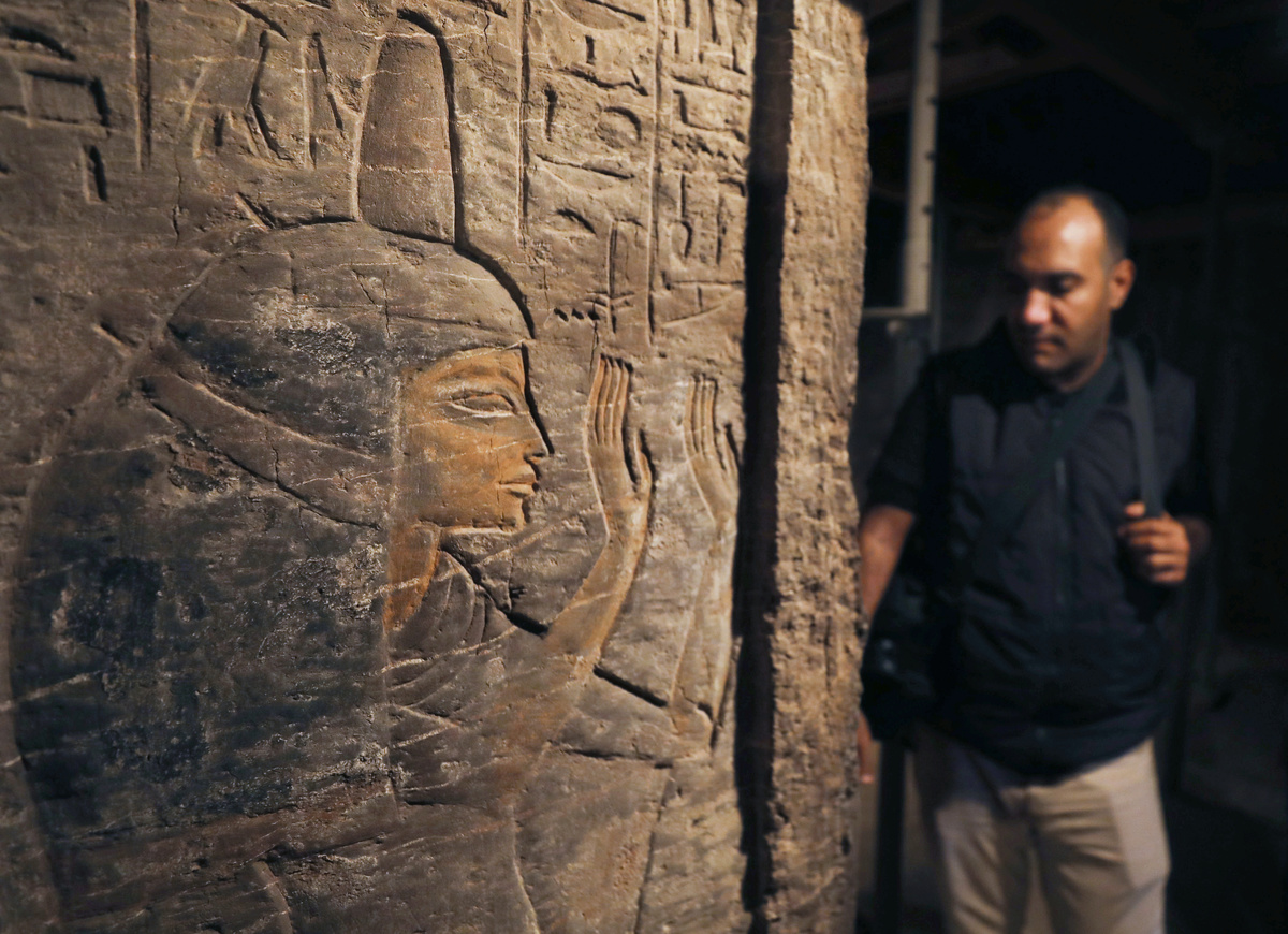 A visitor observes the wall of a Khufu-Imhat tomb, at the Saqqara area near its necropolis, in Giza, Egypt November 10, 2018. REUTERS/Mohamed Abd El Ghany