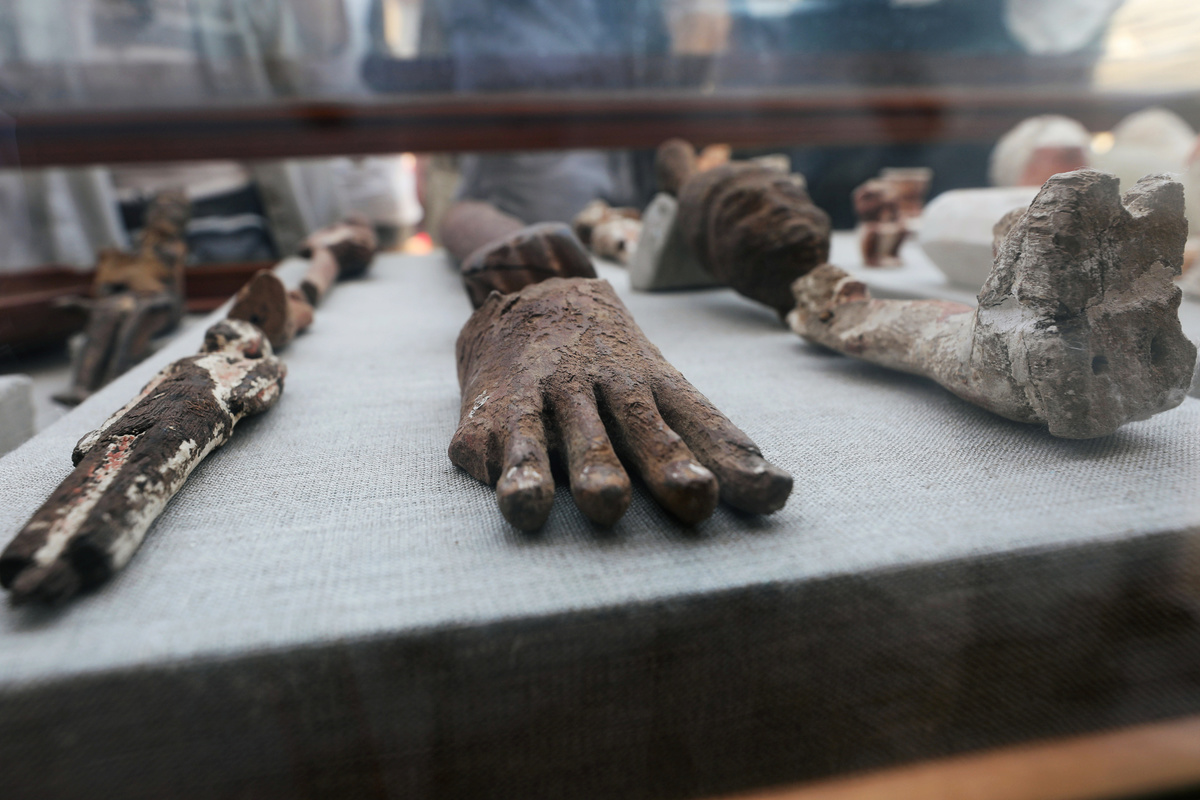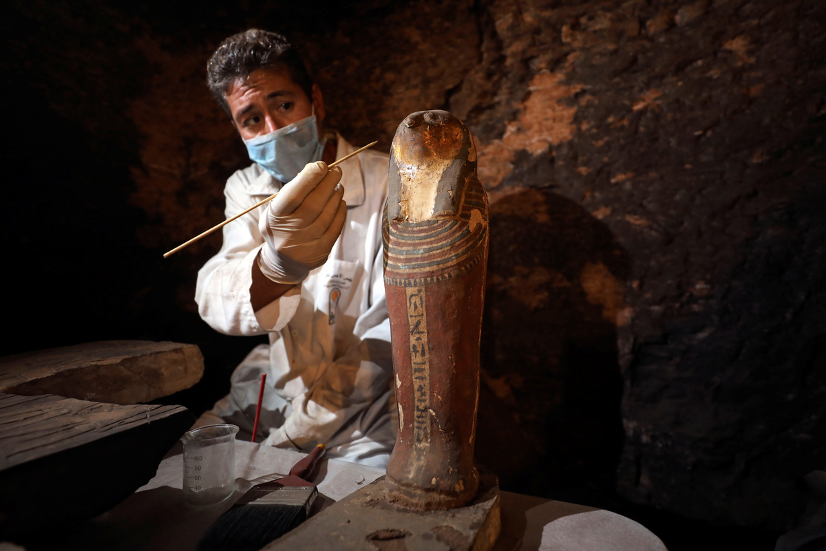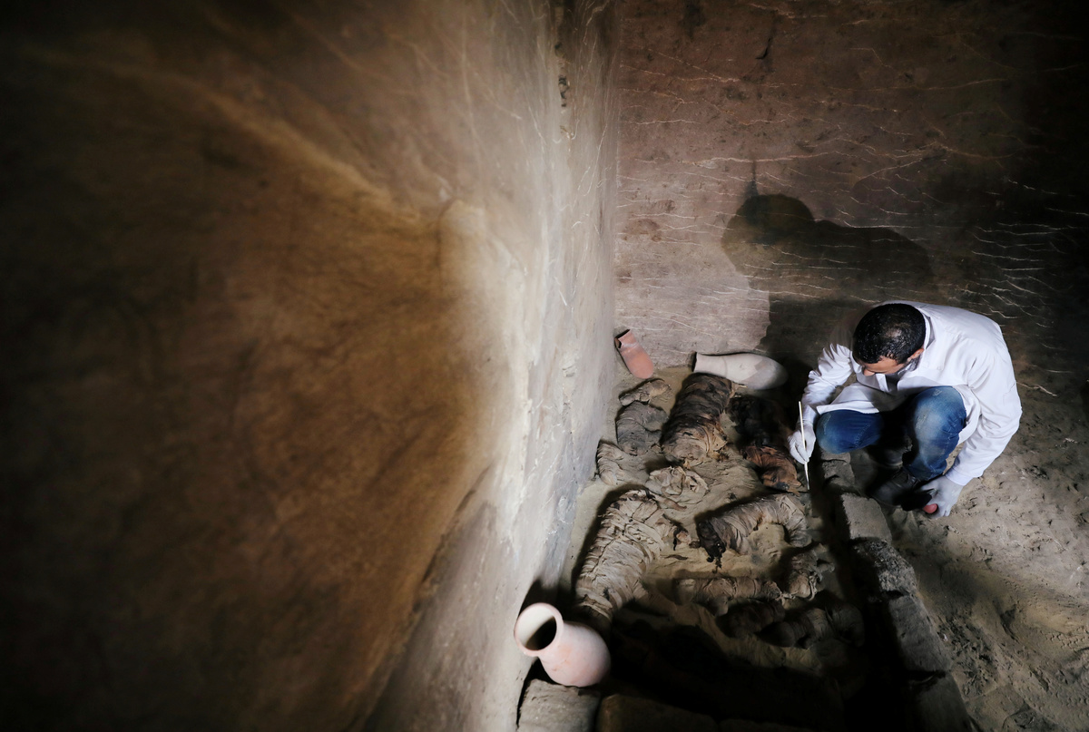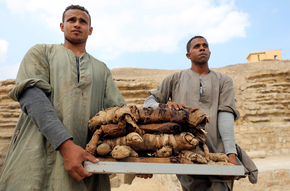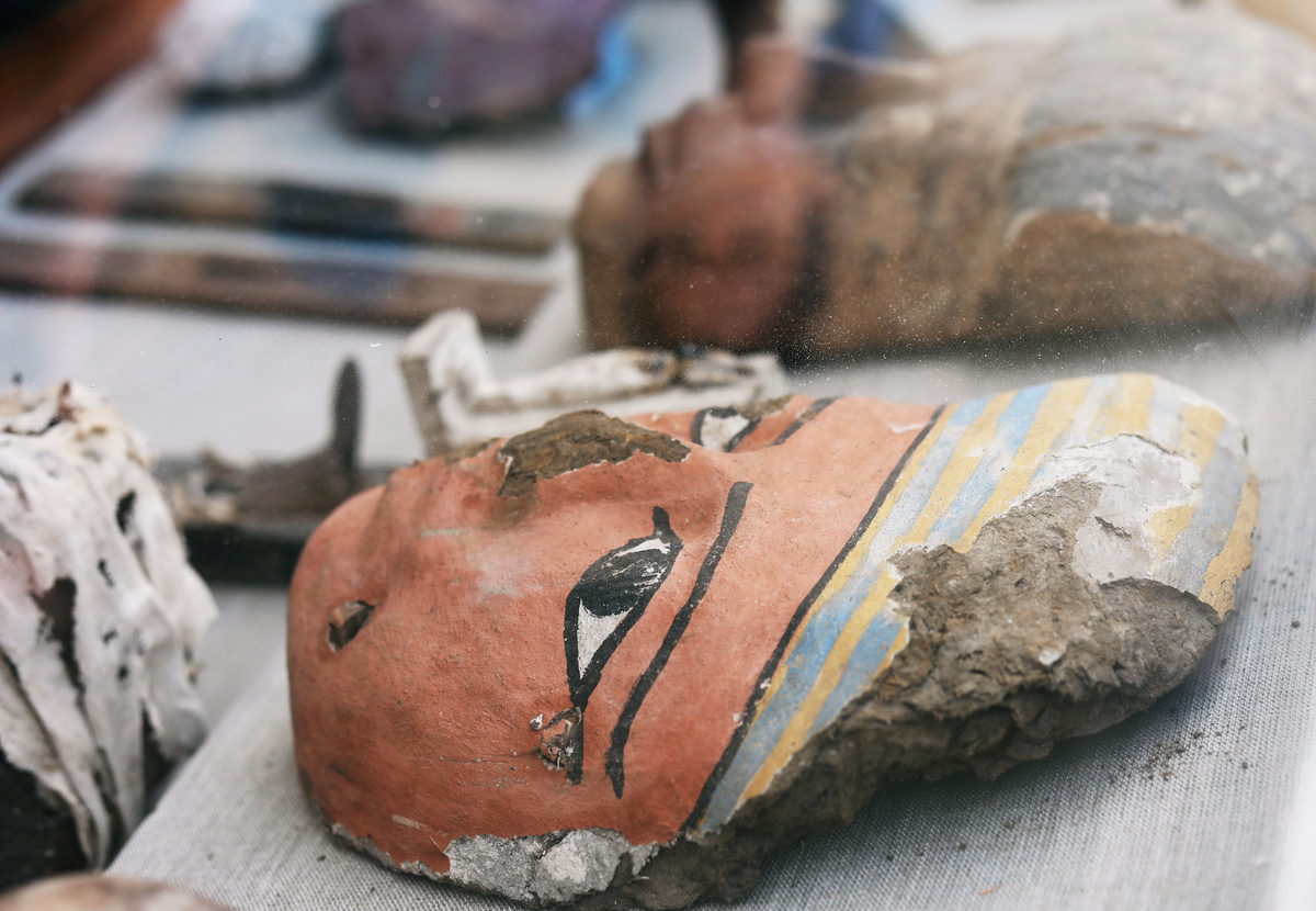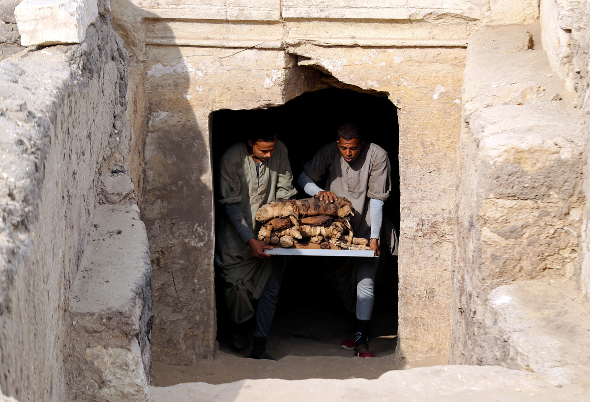 Archaeological worker carries mask artefacts outside the tomb of Khufu-Imhat, at the Saqqara area near its necropolis, in Giza, Egypt November 10, 2018. REUTERS/Mohamed Abd El GhanyAn Egyptian artefact on display outside the tomb of Khufu-Imhat, at the Saqqara area near its necropolis, in Giza, Egypt November 10, 2018. REUTERS/Mohamed Abd El GhanyAn Egyptian archaeologist works on the mummified cats inside the tomb of Khufu-Imhat, at the Saqqara area near its necropolis, in Giza, Egypt November 10, 2018. REUTERS/Mohamed Abd El GhanyAn archaeologist works outside the tomb of Khufu-Imhat, at the Saqqara area near its necropolis, in Giza, Egypt November 10, 2018. REUTERS/Mohamed Abd El GhanyA cat statue that was discovered inside the tomb of Khufu-Imhat is displayed, at the Saqqara area near its necropolis, in Giza, Egypt November 10, 2018. REUTERS/Mohamed Abd El GhanyA worker carries an artefact inside the tomb of Khufu-Imhat, at the Saqqara area near its necropolis, in Giza, Egypt November 10, 2018. REUTERS/Mohamed Abd El GhanyAn archaeologist works inside the tomb of Khufu-Imhat, at the Saqqara area near its necropolis, in Giza, Egypt November 10, 2018. REUTERS/Mohamed Abd El GhanyArchaeological artefacts in the shape of snakes are seen outside the tomb of Khufu-Imhat, at the Saqqara area near its necropolis, in Giza, Egypt November 10, 2018. REUTERS/Mohamed Abd El GhanyA worker carries an artefact outside the tomb of Khufu-Imhat, at the Saqqara area near its necropolis, in Giza, Egypt November 10, 2018. REUTERS/Mohamed Abd El GhanyA worker carries an artefact outside the tomb of Khufu-Imhat, at the Saqqara area near its necropolis, in Giza, Egypt November 10, 2018. REUTERS/Mohamed Abd El GhanyWorkers carry mummified cats outside the tomb of Khufu-Imhat, at the Saqqara area near its necropolis, in Giza, Egypt November 10, 2018. REUTERS/Mohamed Abd El GhanyAn archaeologist works inside the tomb of Khufu-Imhat, at the Saqqara area near its necropolis, in Giza, Egypt November 10, 2018. REUTERS/Mohamed Abd El GhanyAn archaeologist works outside the tomb of Khufu-Imhat, at the Saqqara area near its necropolis, in Giza, Egypt November 10, 2018. REUTERS/Mohamed Abd El GhanyWorkers carry mummified cats outside the tomb of Khufu-Imhat, at the Saqqara area near its necropolis, in Giza, Egypt November 10, 2018. REUTERS/Mohamed Abd El Ghany