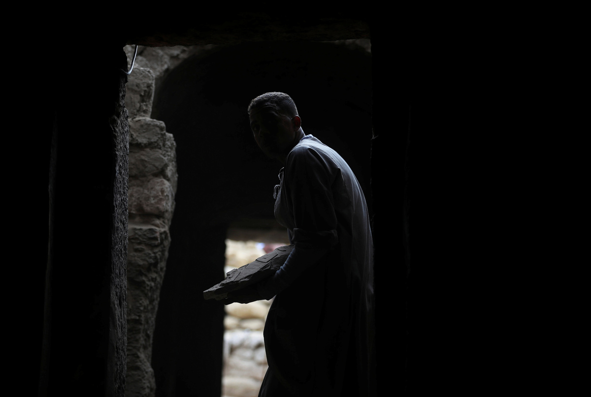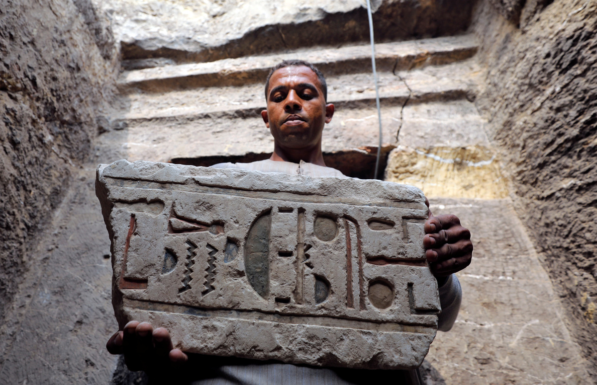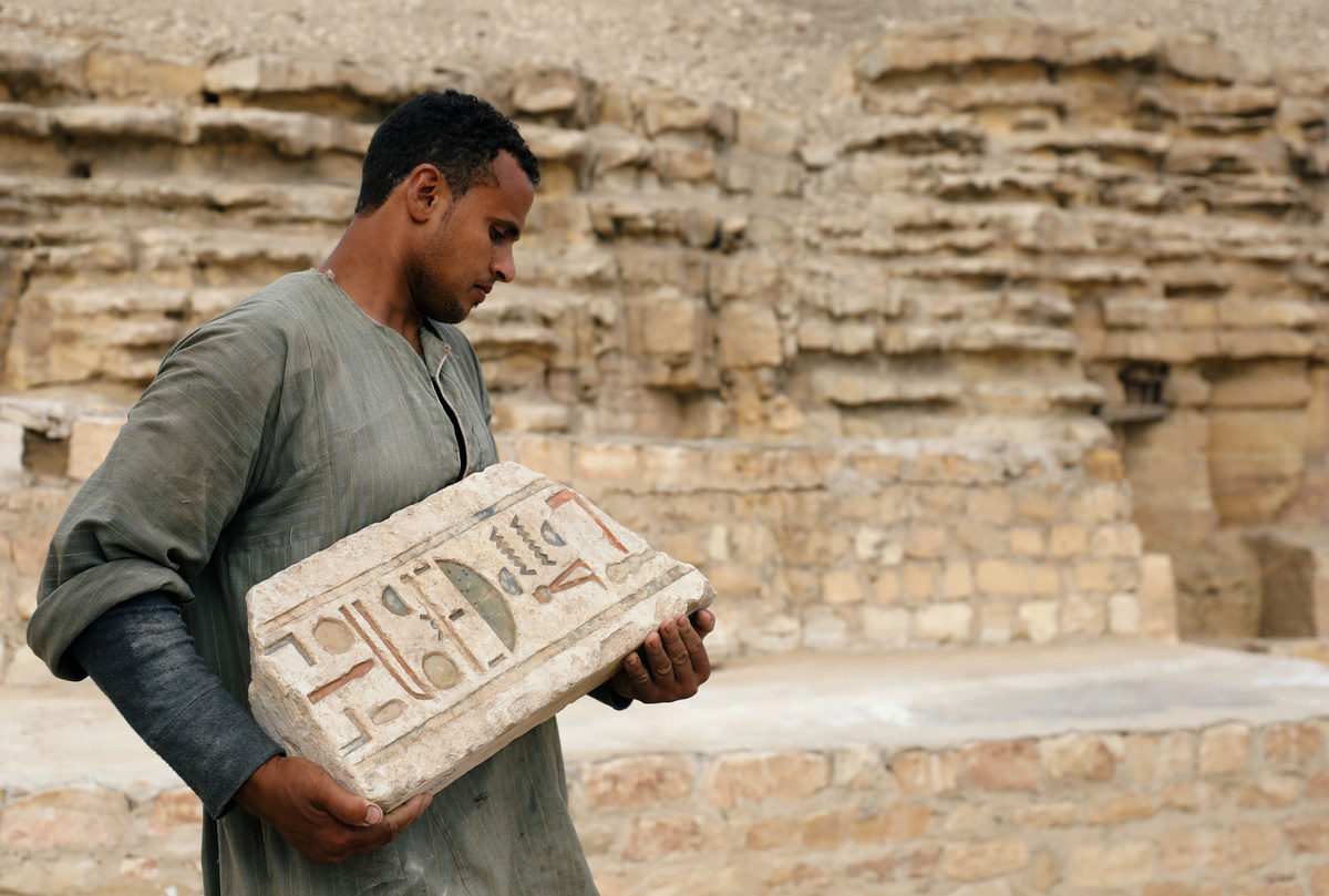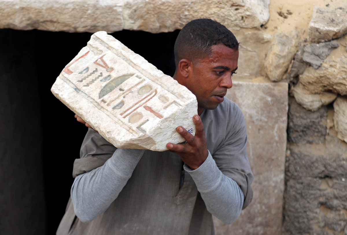 A worker carries an artefact outside the tomb of Khufu-Imhat, at the Saqqara area near its necropolis, in Giza, Egypt November 10, 2018. REUTERS/Mohamed Abd El Ghany