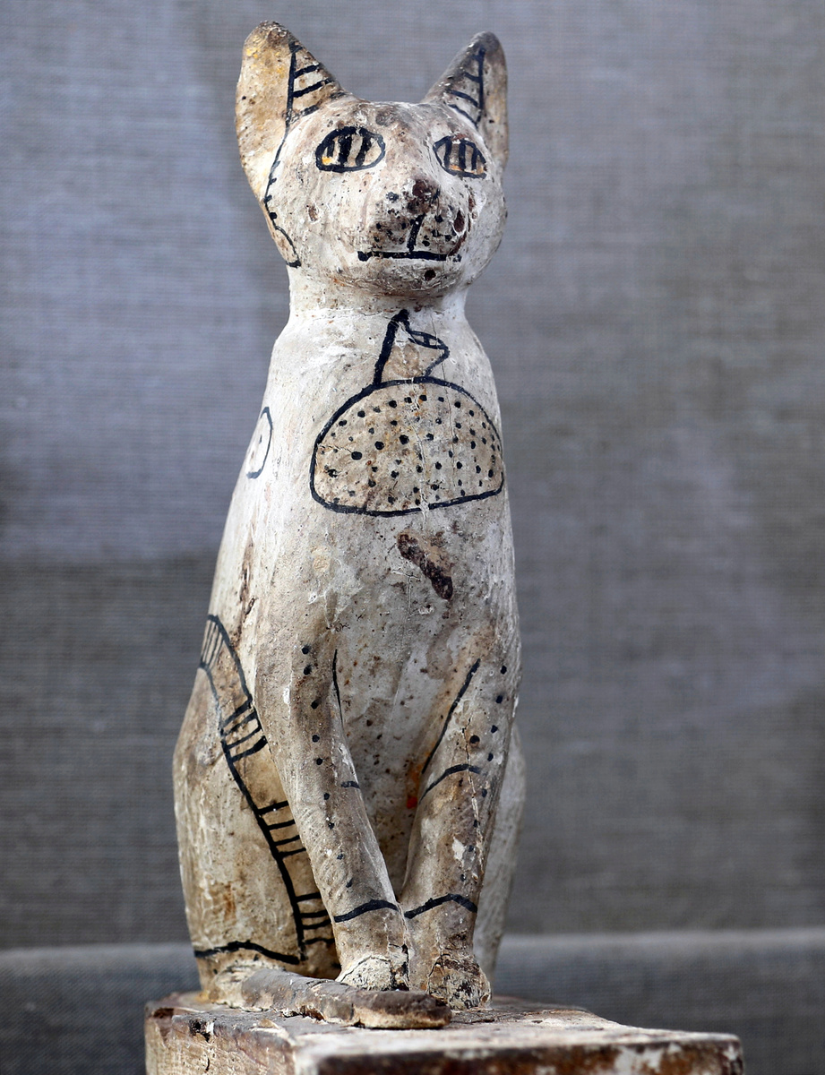 Dozens of cat mummies and gilded statues of cats were unearthed, including a bronze statue dedicated to the cat goddess Bastet.