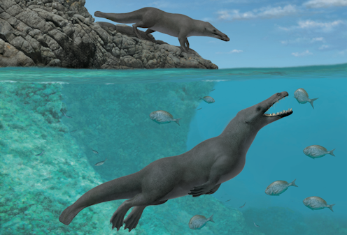Around 42 million years ago, and still land-worthy, the newly discovered Peregocetus pacificus set off on an epic journey to the other side of the world. In the Middle Eocene era (roughly 48 to 38m years ago), Africa and South America were half as far apart, but that is still an impressive swim for an animal less than three metres long that was not completely adapted to marine life.