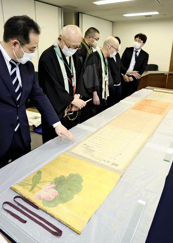 Kosai Fujita, chief administrative official of Sennyu-ji temple, said, "As the 800th anniversary of the passing away of Shunjo will be held in six years time, the timing of this restoration is very meaningful. We hope [the document] will regain its beautiful appearance."