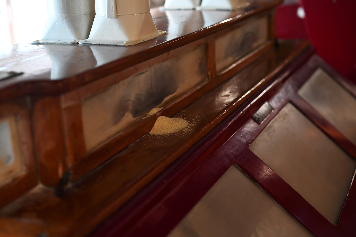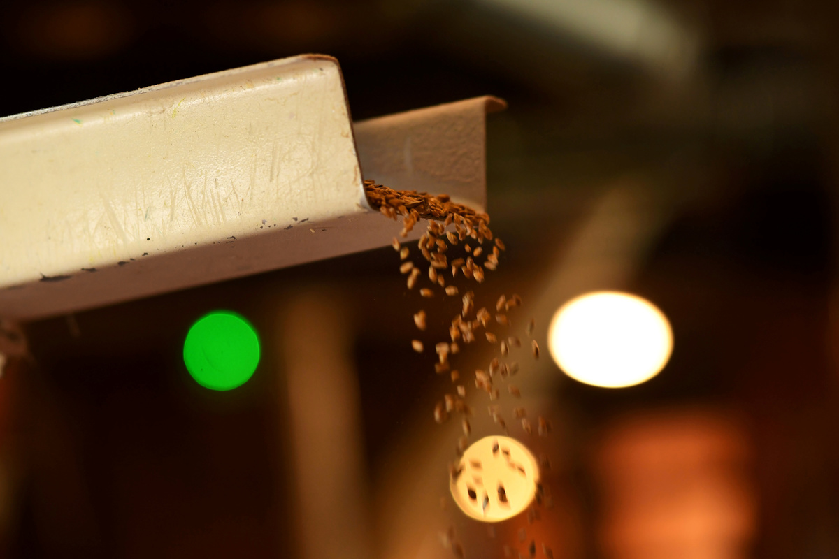 Wheat grain is milled inside the family run Shipton Mill, as a rare boon from the novel coronavirus disease (COVID-19) outbreak sees soaring demand for their organic flour from a new generation of locked-down home bakers, in Tetbury, Britain May 5, 2020. Picture taken May 5, 2020. REUTERS/Dylan Martinez
