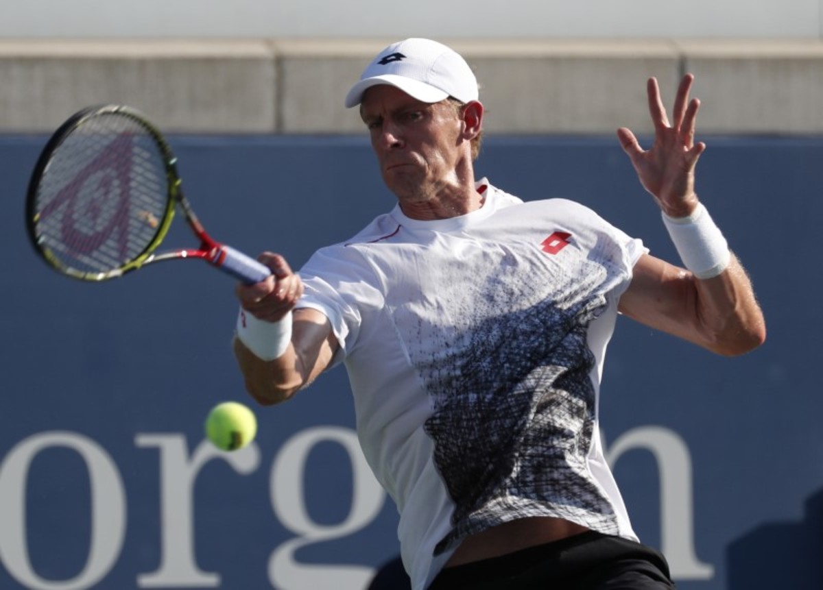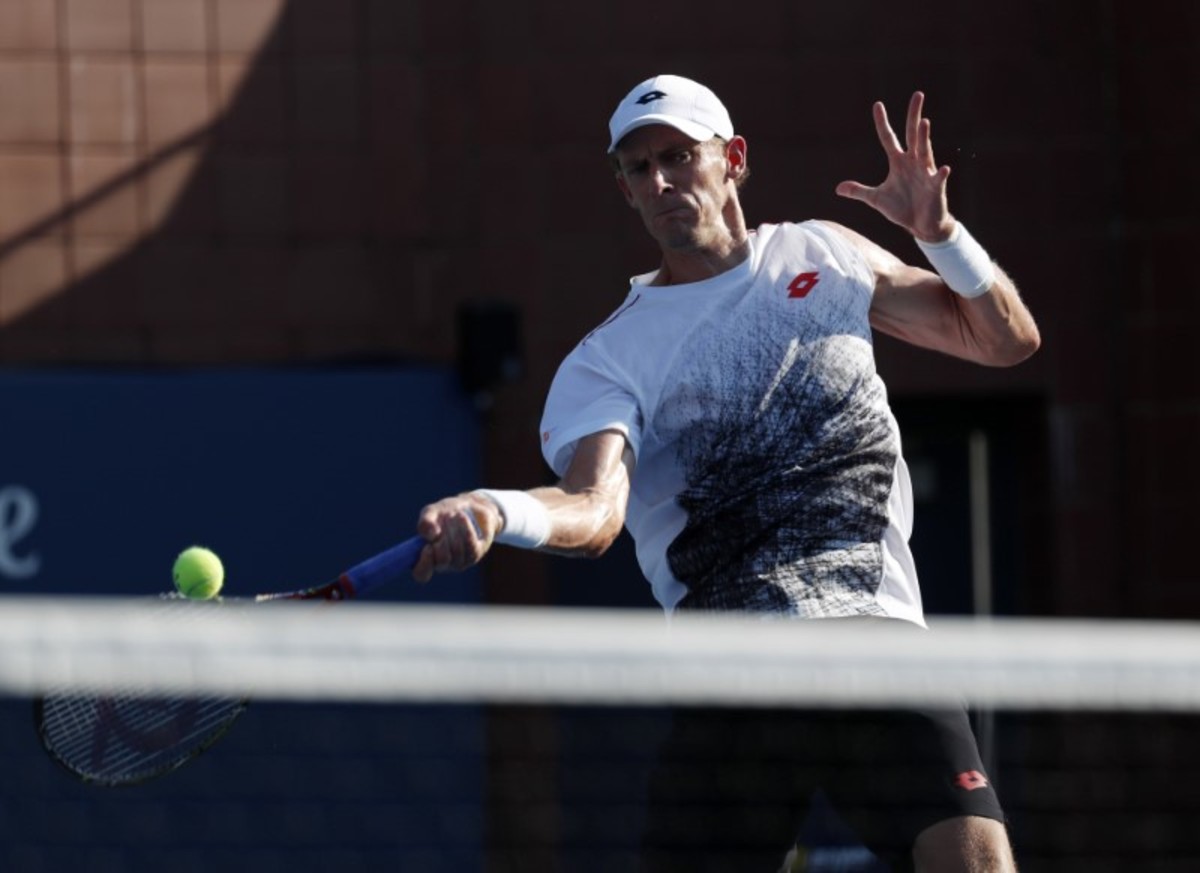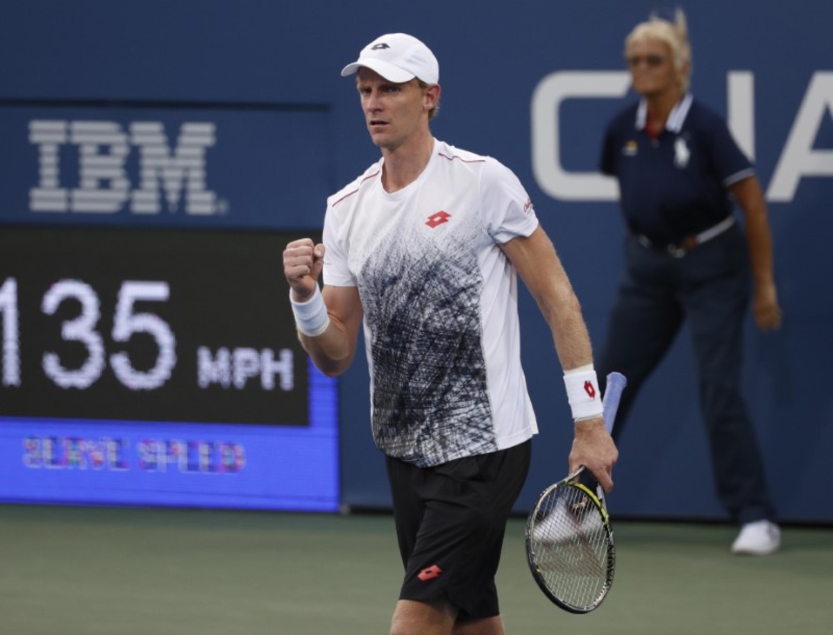Aug 29, 2018; New York, NY, USA; Kevin Anderson of South Africa hits to Jeremy Chardy of France in a second round match on day three of the 2018 U.S. Open tennis tournament at USTA Billie Jean King National Tennis Center. Mandatory Credit: Jerry Lai-USA TODAY SportsAug 29, 2018; New York, NY, USA; Kevin Anderson of South Africa hits to Jeremy Chardy of France in a second round match on day three of the 2018 U.S. Open tennis tournament at USTA Billie Jean King National Tennis Center. Mandatory Credit: Jerry Lai-USA TODAY Sports