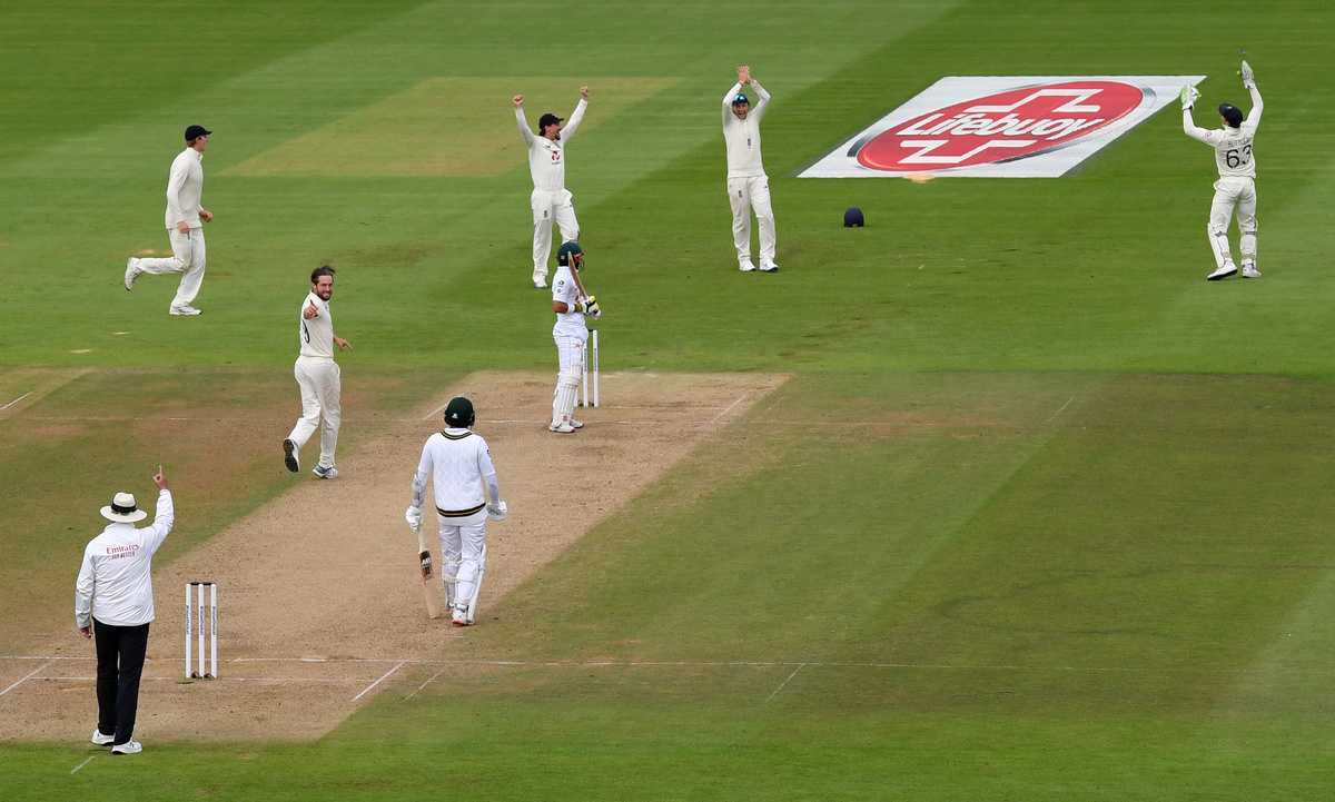 Anderson (five for 56), who had claimed his fourth wicket of the innings in the opening session, completed his 29th five-for in tests when he enticed Naseem Shah (0) to edge to Dom Sibley at third slip to wrap up the Pakistan innings.