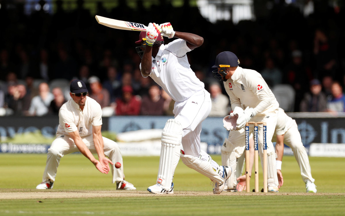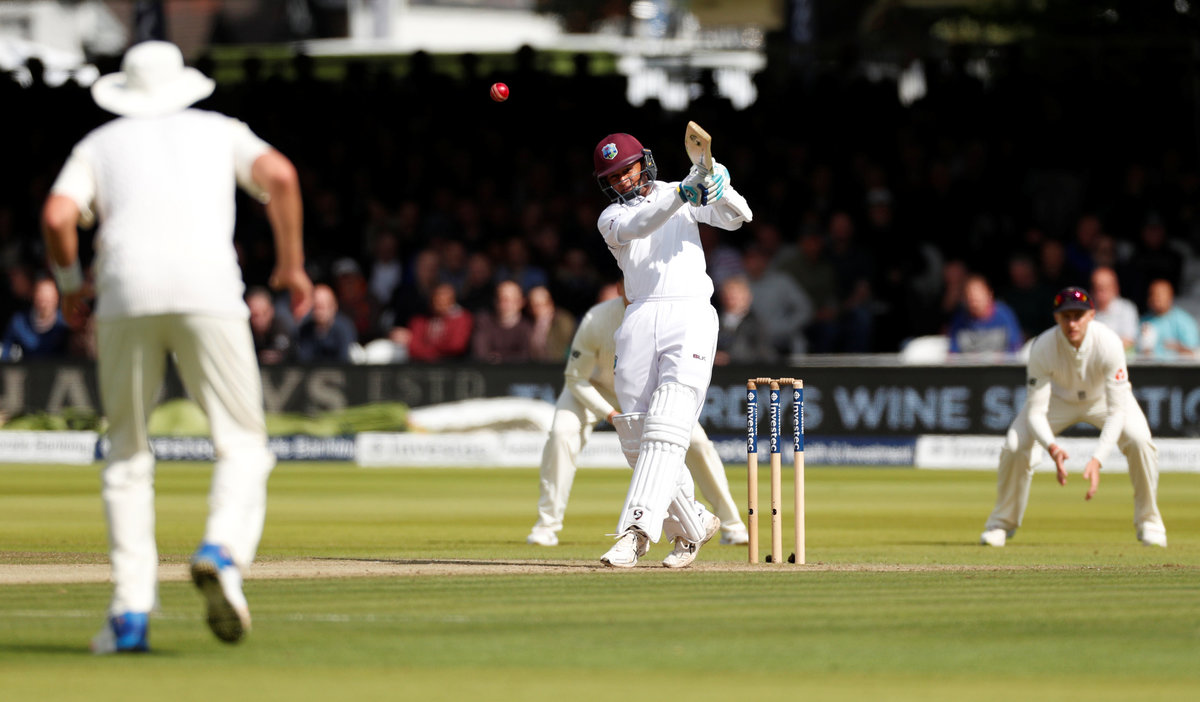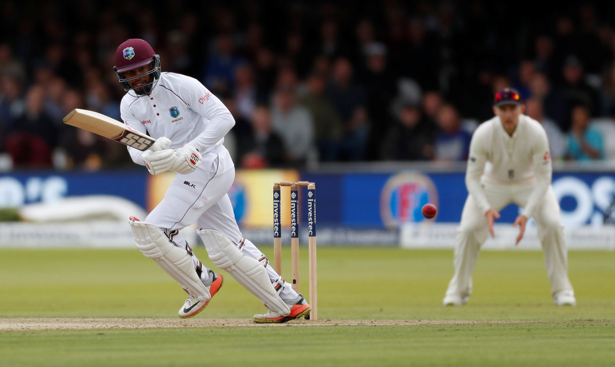 Hope, who scored a century in each innings of the second test at Headingley when West Indies squared the series, batted throughout the opening session, playing one glorious cover drive to the boundary off Ben Stokes and brought up hishalf-century with an equally delightful push to the mid-wicket boundary.