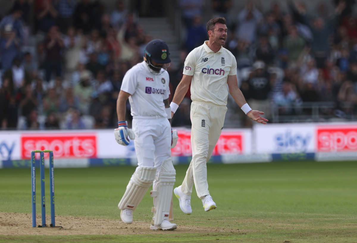 Anderson leapt and let out a roar to celebrate the India captain's dismissal for seven.