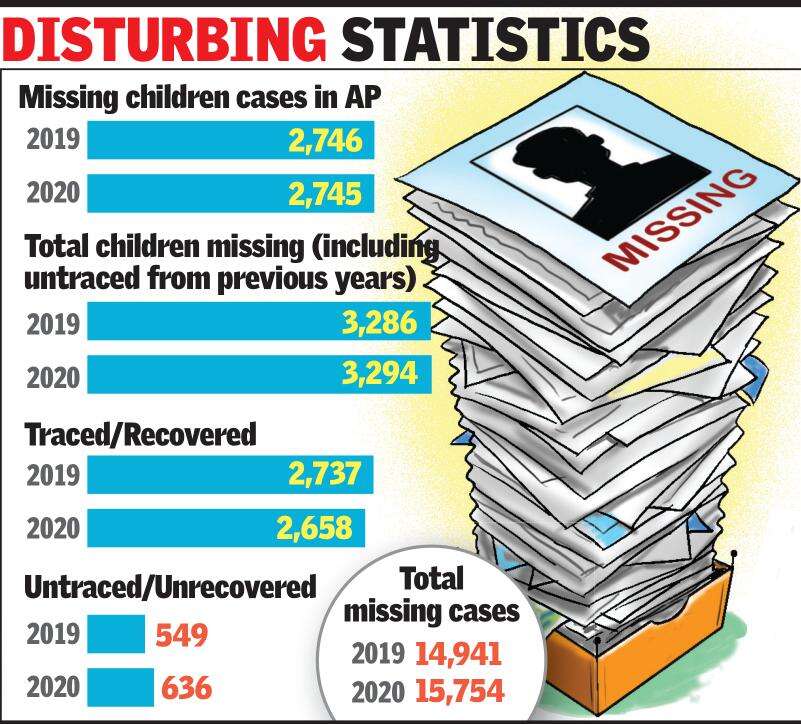 VIJAYAWADA: The number of untraced missing children substantially increased by 15% in Andhra Pradesh in 2020 compared to 2019, according to the latest Crime in India report released by the National Crime Records Bureau (NCRB).