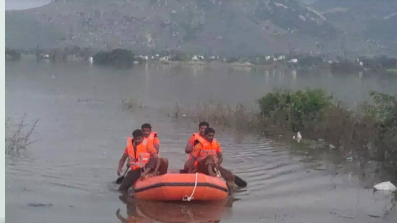 Meanwhile, a three storey building came crashing down at Kadapa town in the early hours on Sunday due to floods and inclement weather. Police and fire fighting personnel rescued two persons including that of a woman in the building crash incident.